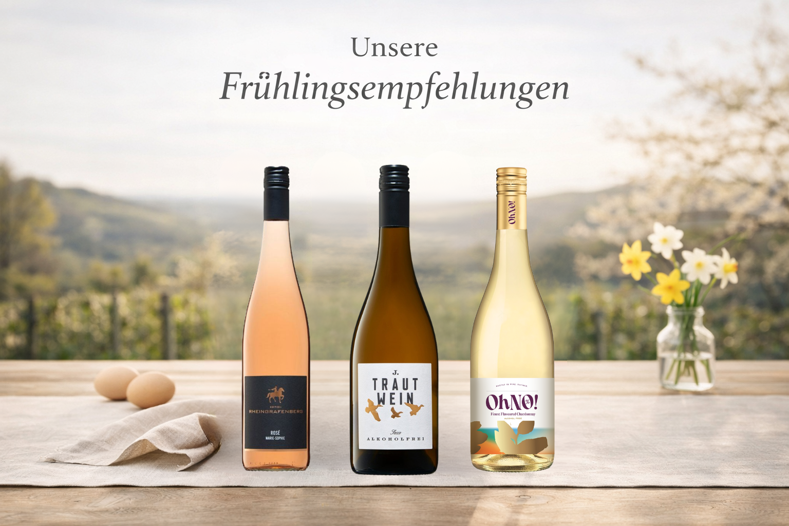 In unserem Mix-Paket ist mit dem alkoholfreien Secco, dem OhNo! Chardonay und dem Rosé Marie-Sophie sicherlich für jeden etwas dabei – mit und ohne Alkohol.